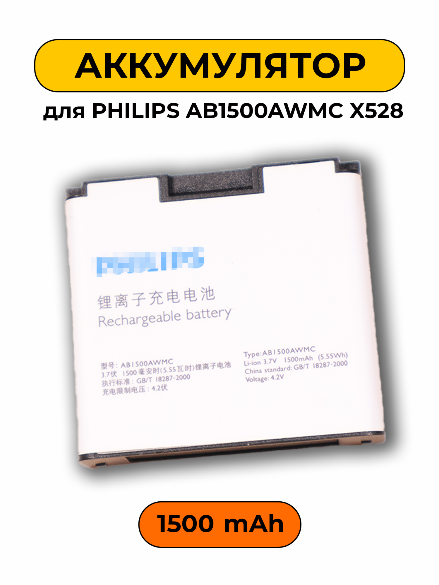 —Аккумулятор для PHILIPS AB1500AWMC X528 батарея
